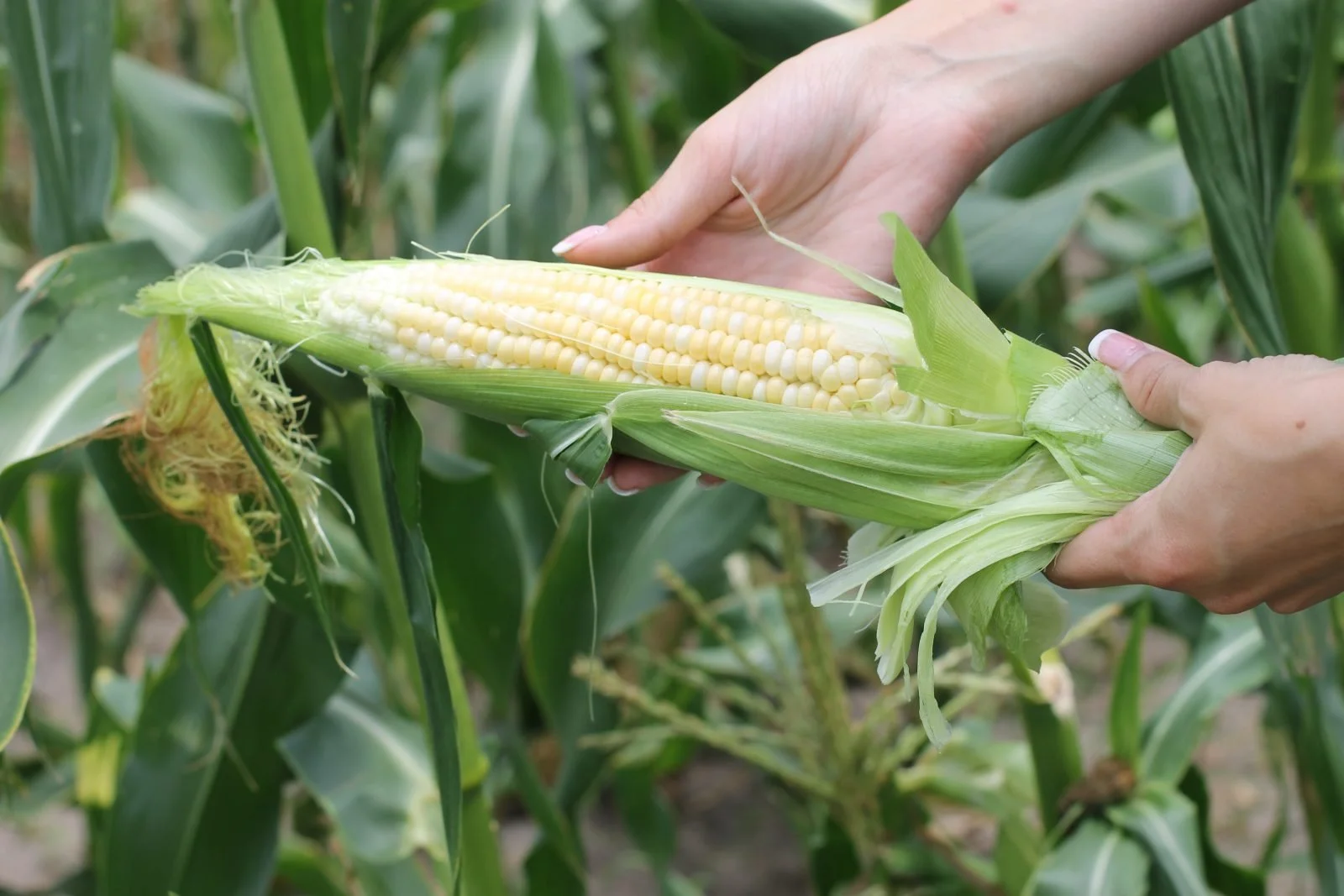 Kirsten Rodriguez, Long & Scott Farms, holds an ear of Zellwood Sweet Corn, a variety that can only be purchased at one farm in the world and is served seasonally by Gator Dining.
